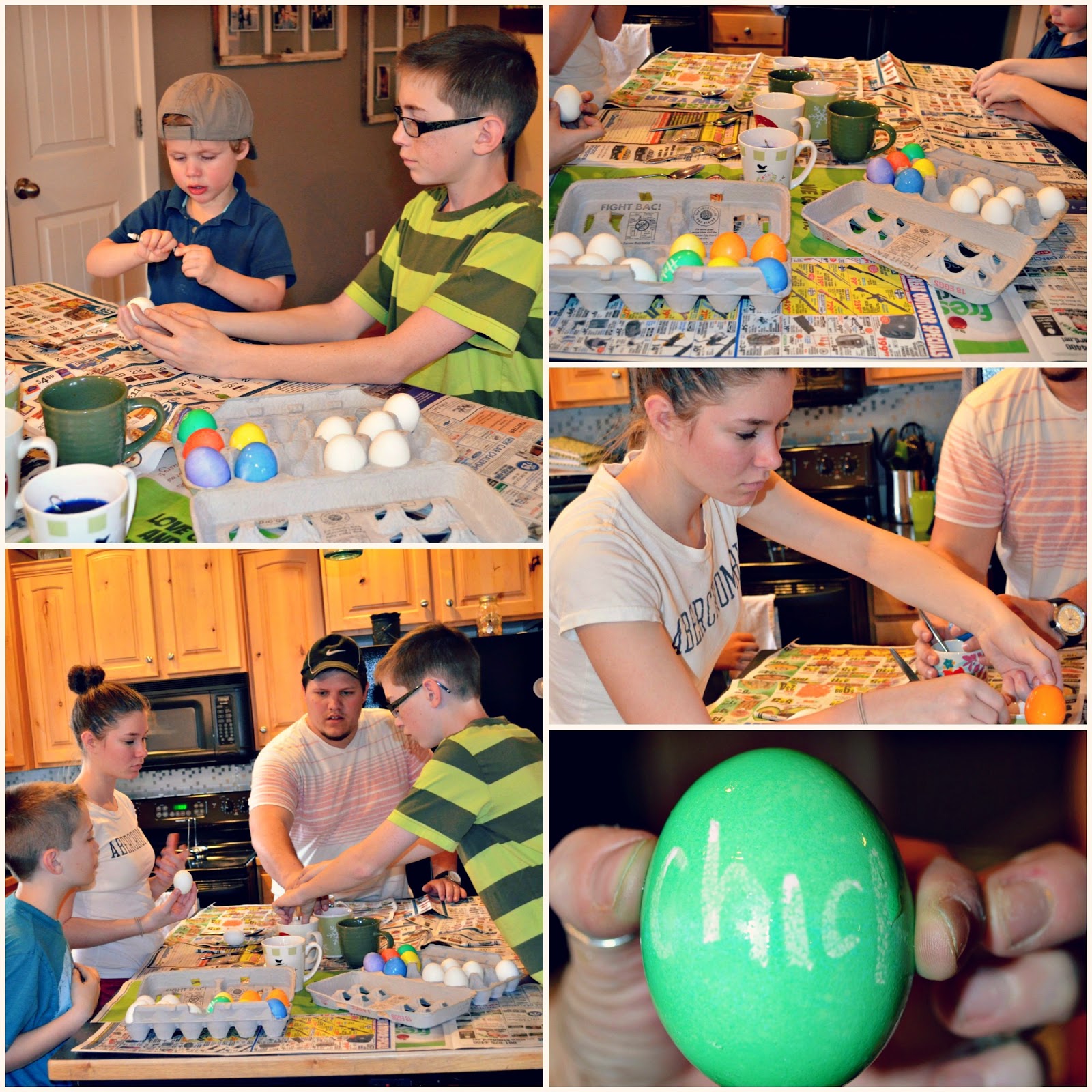 While we were there we colored eggs, jumped on the tramp, played outside, laughed, talked, napped, played games and when it got dark the kids did a fun flashlight egg hunt.